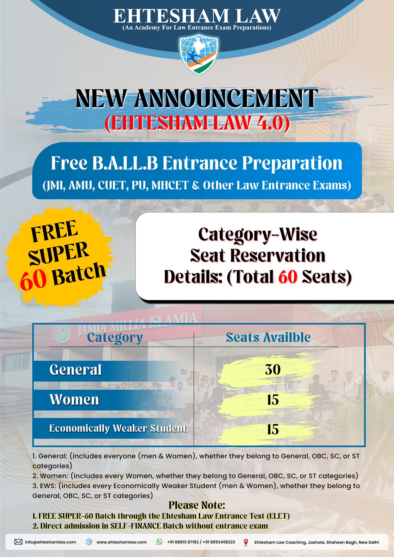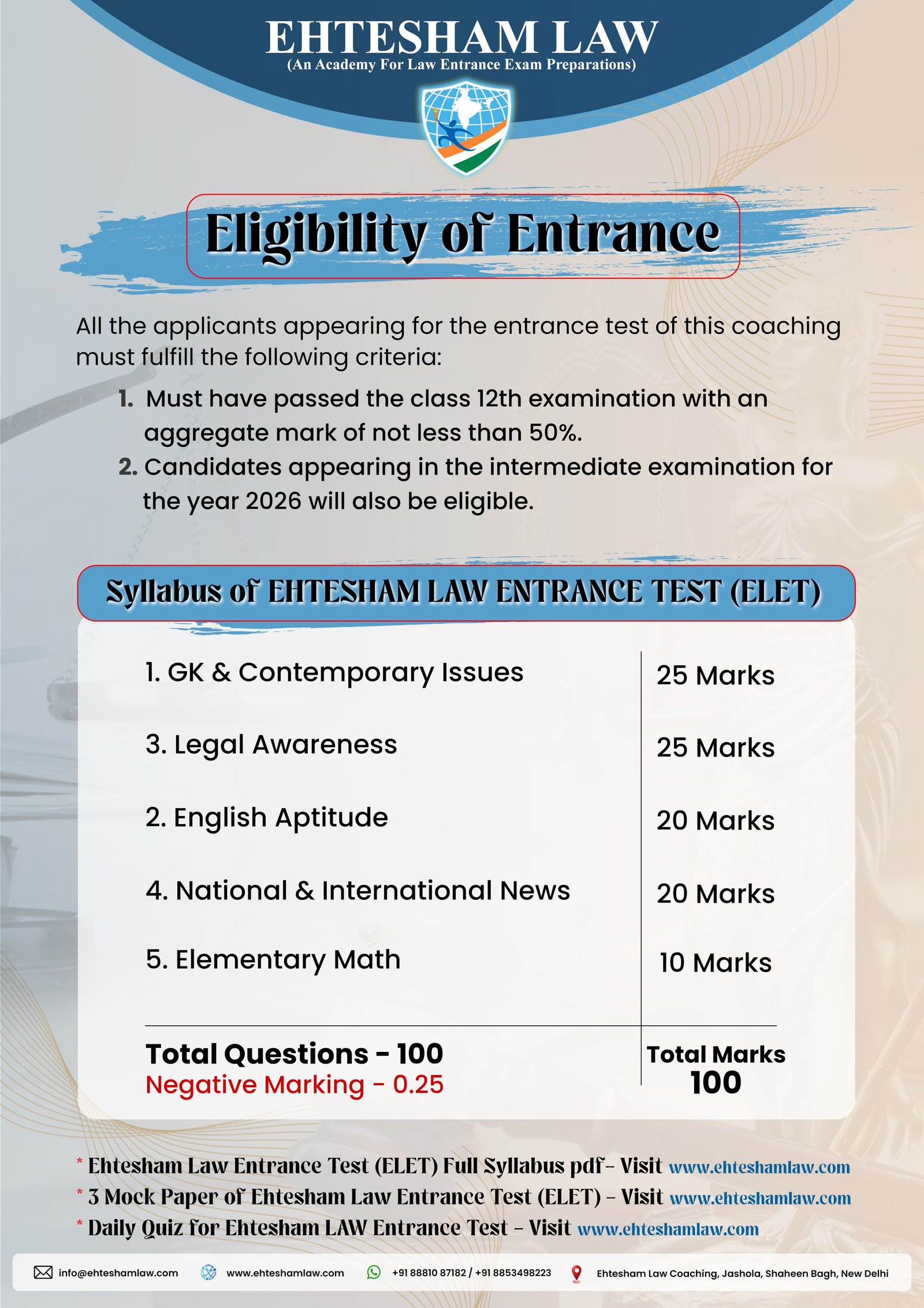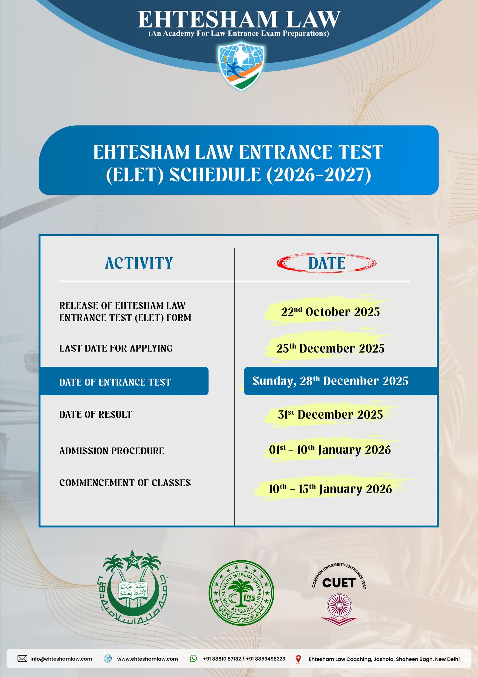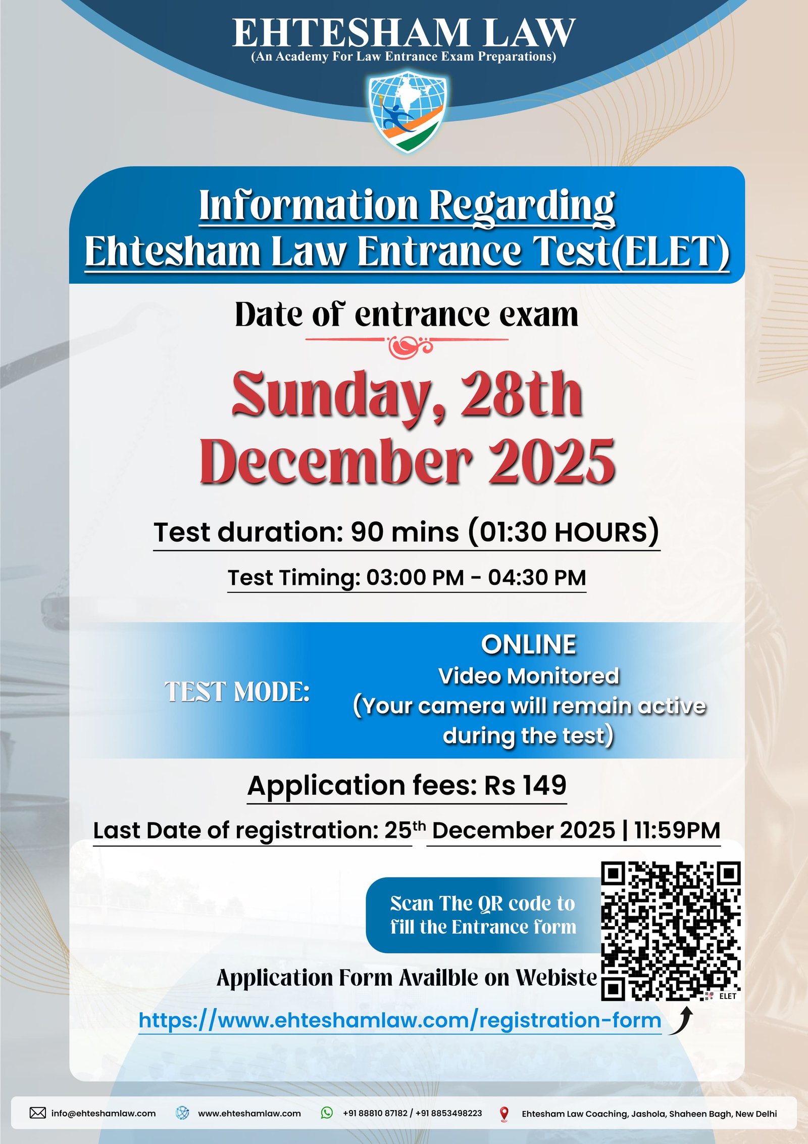 Ehtesham Law provide Free Entrance Guidance to all student who are preparing for Law Entrance. IMPORTANT- Provide Separate Mock for Separate University.